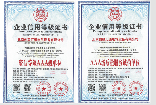 近日,倍受業(yè)內(nèi)關(guān)注的2018年度中AAA級重質(zhì)量守信用企業(yè)復(fù)審在北京落幕,中市場監(jiān)測中心聯(lián)合中市場研究中心等多家機構(gòu)以及企業(yè)評審委員會組織專家對申報復(fù)審的中AAA級重質(zhì)量守信用企業(yè)等殊榮進行綜合評價。北京創(chuàng)聯(lián)匯通電氣設(shè)備有限公司經(jīng)中產(chǎn)業(yè)質(zhì)量調(diào)查評價中心、中企業(yè)信用評價管理中心等機構(gòu)審核,再次被評為“中AAA級信用企業(yè)”榮譽稱號。