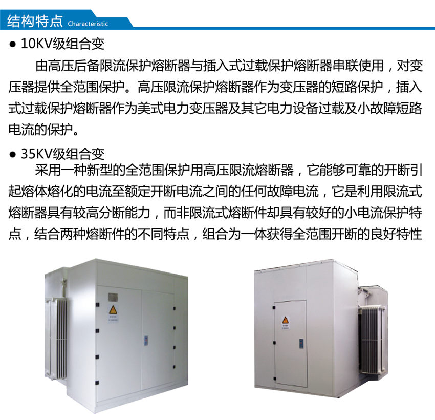 ZGS-Z.T-□/□系列組合式變壓器是消化吸收內(nèi)外的先進(jìn)技術(shù)結(jié)合內(nèi)需求自行開發(fā)的系列產(chǎn)品,該產(chǎn)品是將變壓器,負(fù)荷開關(guān),高壓熔斷器安裝在變壓器的箱體內(nèi),利用變壓器的絕緣液體作為整個(gè)產(chǎn)品的絕緣和散熱介質(zhì),采用全密封結(jié)構(gòu),外殼采用分體,噴丸、酸洗、磷化、分別噴涂底漆、中間漆、面漆達(dá)到表面的防腐性、耐厚性、防紫外線性均超過普通噴涂的強(qiáng)度,具有體積小,重量輕、安裝方便等優(yōu)點(diǎn)。